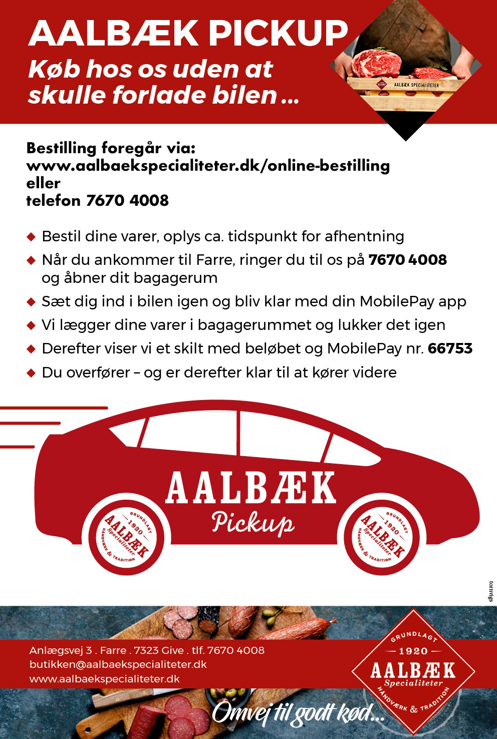 Bestil dine varer, oplys ca. tidspunkt for afhentning indenfor butikkens åbningstider
